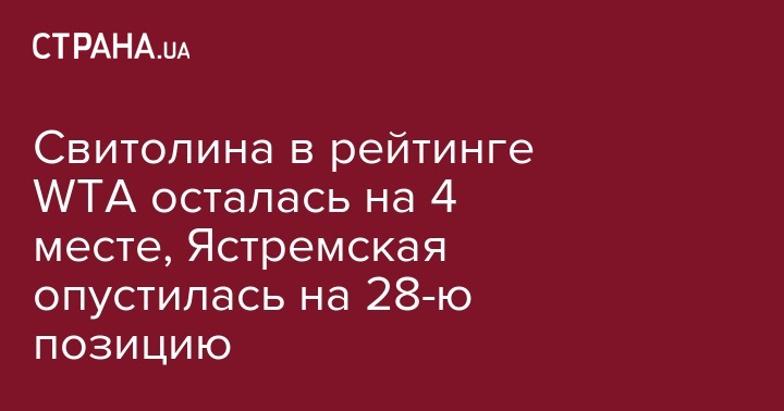 Свитолина в рейтинге WTA осталась на 4 месте, Ястремская опустилась на 28-ю позицию