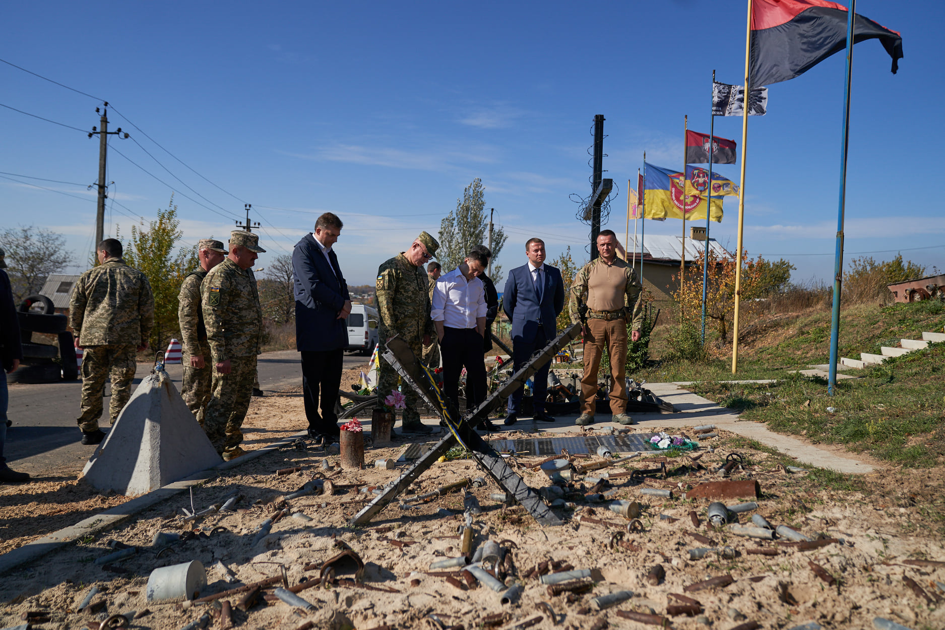 16:53 Тем временем Владимир Зеленский на фоне бандеровских флагов делает инспецию по зоне ООС.
