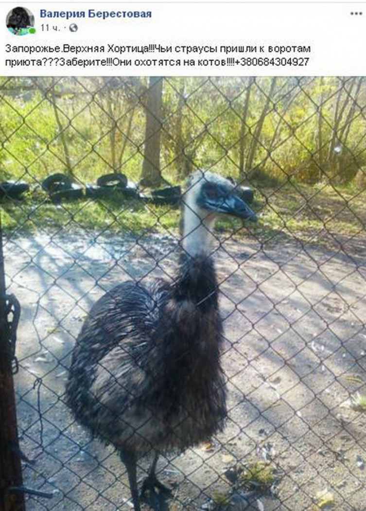 В Запорожье агрессивные страусы напали на кошачий приют, расположенный в Верхней Хортице. Атака произошла в воскресенье, 13 октября. Об этом сообщает издание Depo.Запорожье со ссылкой на зоозащитницу Валерию Берестову.