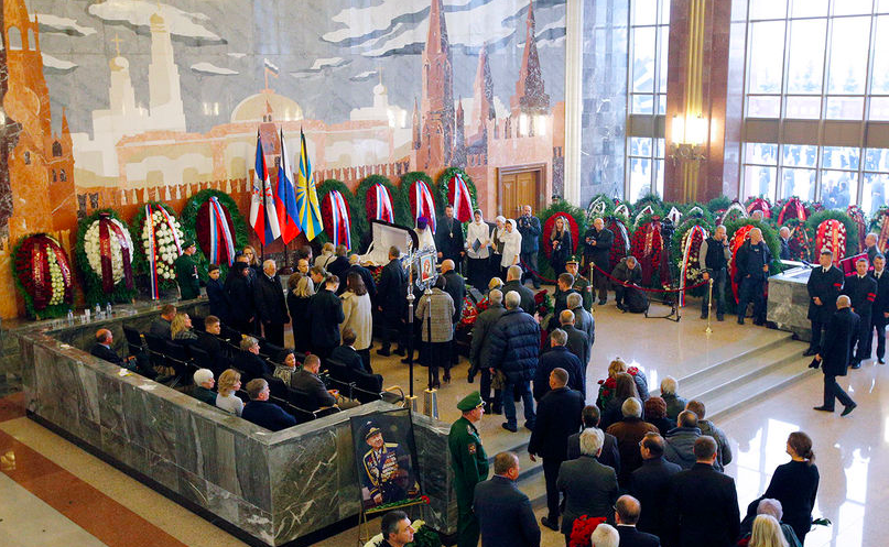 Проститься с Леоновым пришли министр обороны РФ Сергей Шойгу и его заместители, первая в мире женщина-космонавт Валентина Терешкова, представители "Роскосмоса".