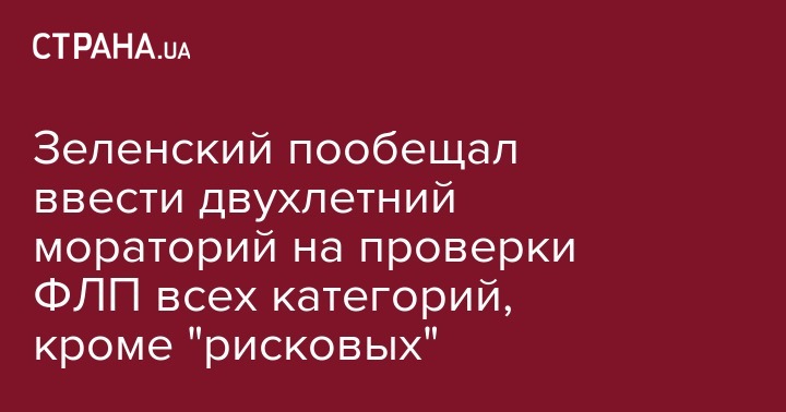 Президент Украины Владимир Зеленский намерен ввести мораторий на два года на проверки физических лиц - предпринимателей (ФЛП) всех категорий, кроме "рисковых". Об этом сообщает пресс-служба главы государства