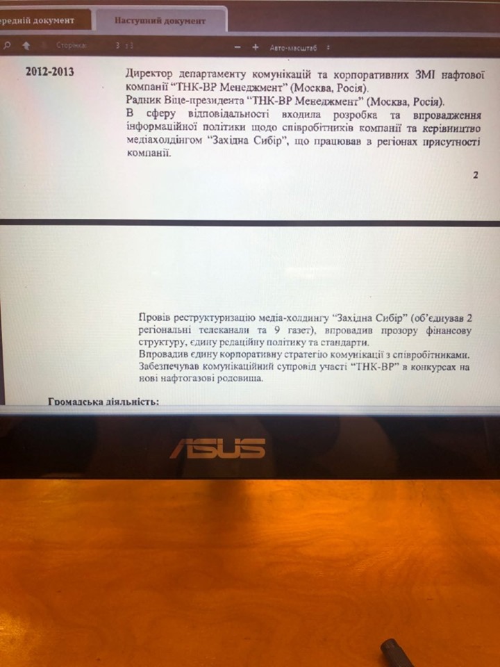 Андрей Прокопенко, по данным Гончаренко, - политтехнолог, который в 2013 году занимался местными выборами в Российской Федерации. Также он работал директором департамента коммуникации и корпоративных СМИ в нефтяной компании "ТНК-ВР Менеджмент" (Москва, Россия). А Андрей Балонь с 2003 по 2016-й год работал в органах следователем, начальником следственных управлений и так далее.