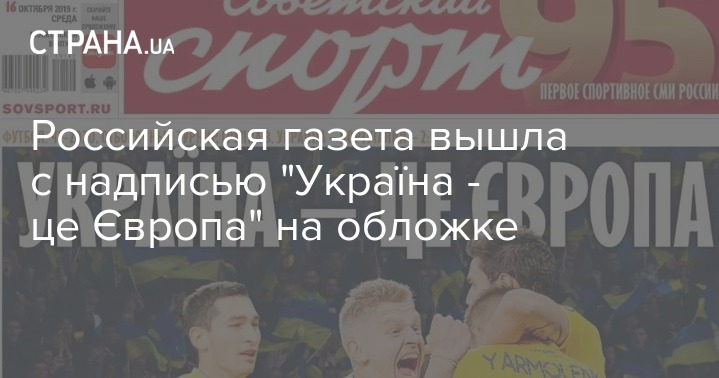 В среду, 16 октября, одно из ведущих спортивных изданий России - газета "Советский спорт" вышла с заголовком на украинском языке. Название статьи "Україна - це Європа" размещено на первой странице этого профильного ежедневника.