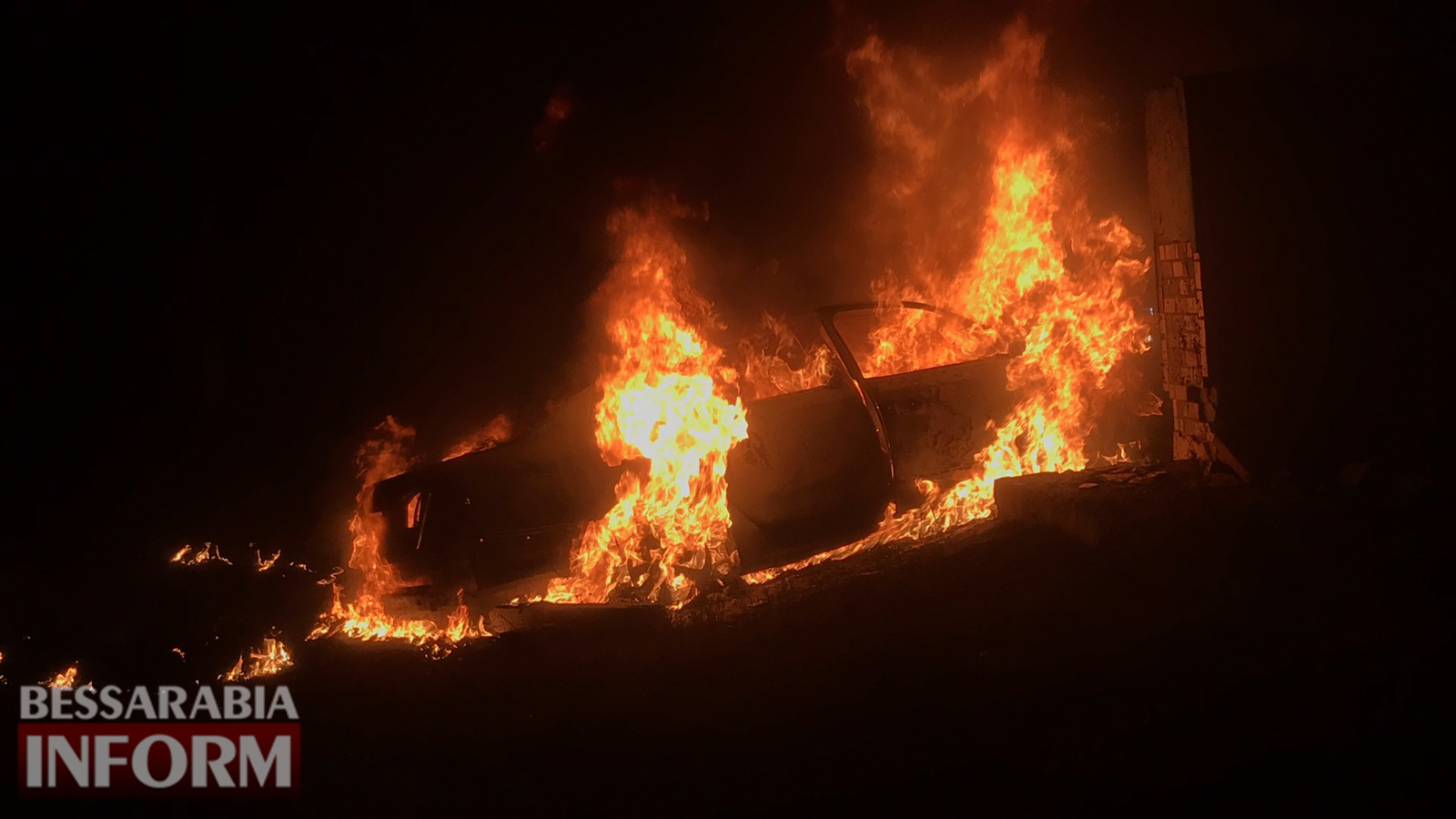 Под Одессой автомобиль врезался в стелу и взорвался, водитель и пассажир сгорели заживо. Фото и видео