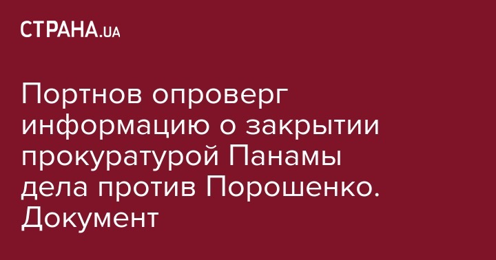 Информация о том, что прокуратура Панамы закрыла уголовное дело против Петра Порошенко, озвученная 16 октября адвокатами экс-президента, не соответствует действительности. Об этом в Telegram-канале сообщил юрист Андрей Портнов, который выступает заявителем по делу.