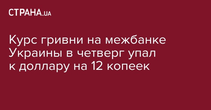Курс гривни на межбанке Украины в четверг упал к доллару на 12 копеек