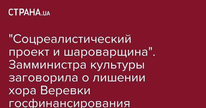 После участия хора Веревки в скандальном номере студии "Квартал 95" заместитель министра культуры Ирина Подоляк подняла вопрос о том, не стоит ли прекратить государственное финансирование коллектива. Об этом она написала в Facebook.