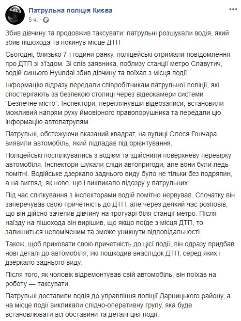 "Друзья, всем спасибо большое за участие и желание помочь! Спасибо большое патрульной полиции города Киева Юрию Зозуле за профессиональную работу", - написал Гутцайт.