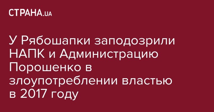 У Рябошапки заподозрили НАПК и Администрацию Порошенко в злоупотреблении властью в 2017 году