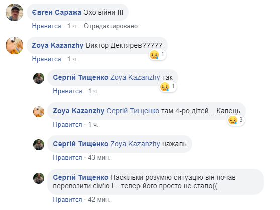 Далее в комментариях появляются имя и фамилия погибшего, а также сообщается, что у него остались четверо детей.