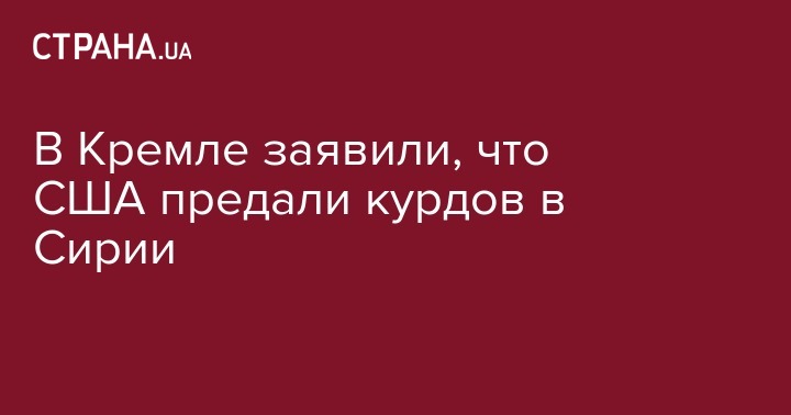США предали курдов, несмотря на то, что в последние годы американцы были их самыми близкими союзниками. Такое заявление сделал пресс-секретарь президента РФ Дмитрий Песков, передает "Интерфакс".