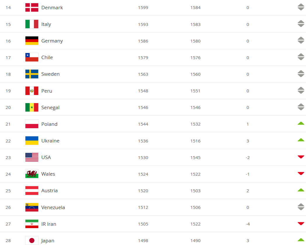 Лучшие 35 команд мира в рейтинга ФИФА