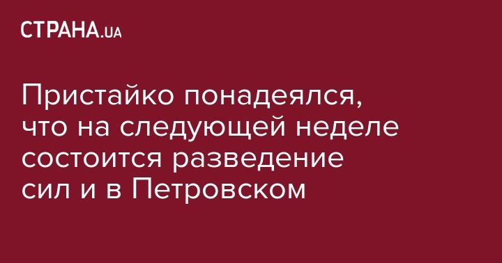 В случае, если начавшееся сегодня разведение сил в Золотом (Луганская область) увенчается успехом, то в течение 7-10 дней оно будет осуществлено и в районе Петровского (Донецкая область). Об этом заявил министр иностранных дел Вадим Пристайко, сообщает hromadske.
