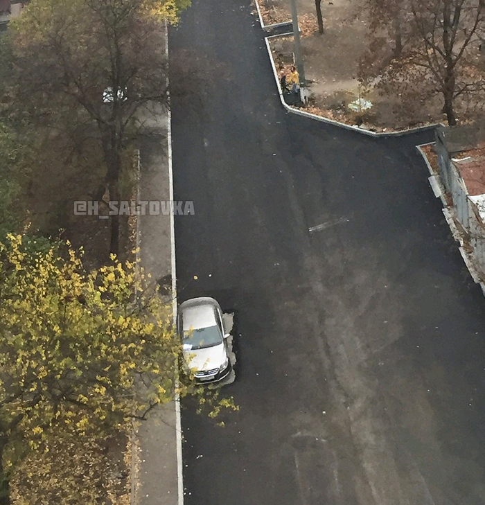 В спальном районе Харькова водитель оставил автомобиль на ремонтируемом участке улицы, и дорожники положили асфальт вокруг него. Об этом передает сообщество "Х@@вая Салтовка" в Twitter.