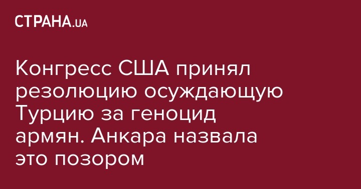 Конгресс США принял резолюцию осуждающую Турцию за геноцид армян. Анкара назвала это позором