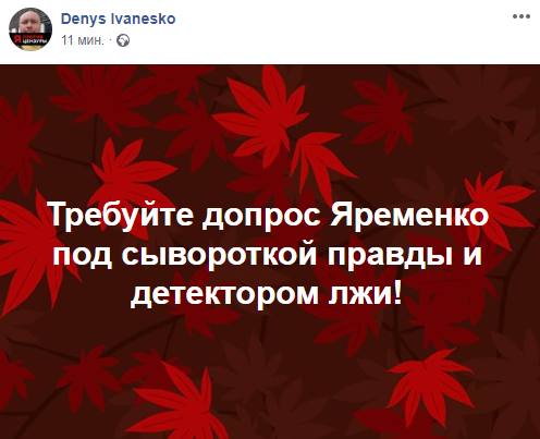 "Требуйте допрос Яременко под сывороткой правды и детектором лжи!" – предлагает директор информационного агентства "Українські Новини" Денис Иванеско.