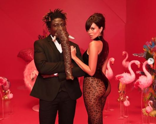 Так, на первой фотографии Каменских позирует в колготках с анималистическим принтом и в черном боди. Поп-звезда находится рядом с персонажем песни - мужчиной с хоботом. На снимке бросаются в глаза шикарные ягодицы Каменских.