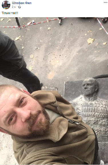 В итоге работы были продолжены. А после демонтажа один из его участников похвастался в facebook фото, где стоит ногами на лежащем на земле барельефе.