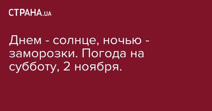 В Украине сегодня, 2 ноября, будет солнечная погода с ночными заморозками. Об этом говорится в сообщении Укргидрометцентра.