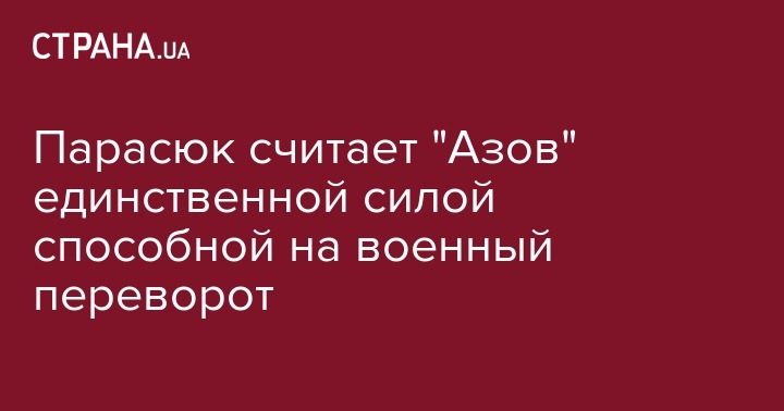 "В 2014 году у нас было много сил, способных на совершение государственного переворота. Сейчас же, пожалуй, осталась только одна, которую создал мой коллега по парламенту. Это военный батальон "Азов". Это очень сильная, структурированная и идеологическая организация. Она способна на такие действия", — сказал Парасюк.