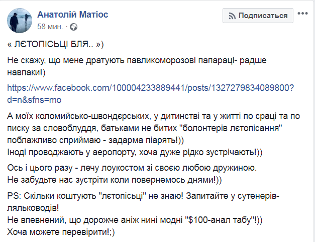 Матиос прокомментировал эти публикации в своем Facebook, не выбирая выражений.