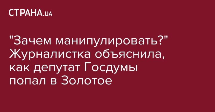"Зачем манипулировать?" Журналистка объяснила, как депутат Госдумы попал в Золотое