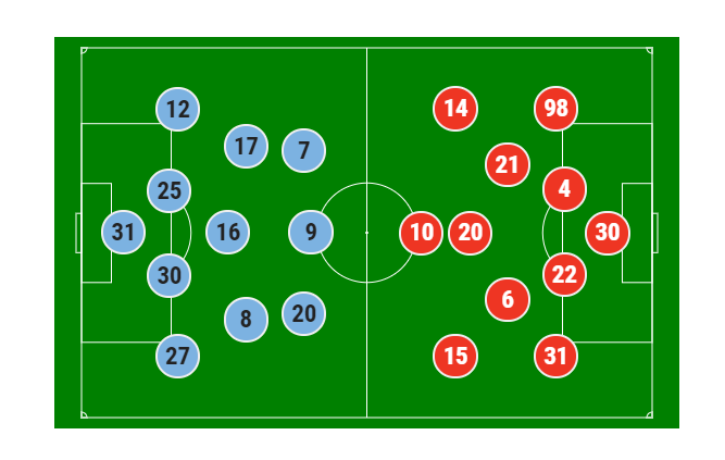 "Манчестер Сити" (4-3-3): Эдерсон - защитники - Канселу, Фернандиньо, Отаменди, Анхелиньо - полузащитники - Де Брёйне, Родри, Гюндоган - нападающие Б. Силва, Жезус, Стерлинг.