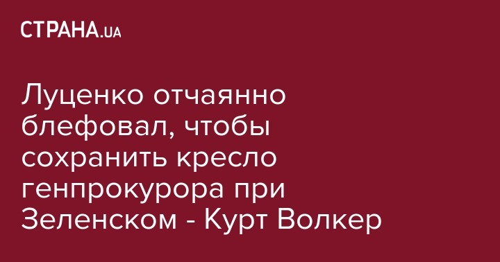 Луценко отчаянно блефовал, чтобы сохранить кресло генпрокурора при Зеленском - Курт Волкер