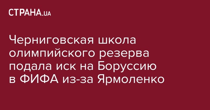 В ФИФА от лица Черниговской СДЮШОР (детской школы олимпийского резерва) подали иск на дортмундскую Боруссию из-за невыплаченного платежа солидарности за переход атакующего полузащитника Андрея Ярмоленко из Динамо Киев в немецкую команду в 2017 году.