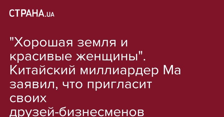"Хорошая земля и красивые женщины". Китайский миллиардер Ма заявил, что пригласит своих друзей-бизнесменов инвестировать в Украину