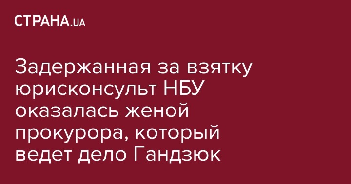 Задержанная за взятку юрисконсульт НБУ оказалась женой прокурора, который ведет дело Гандзюк