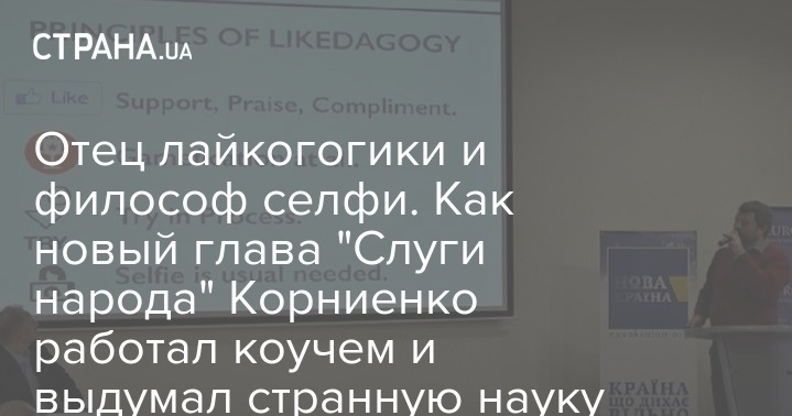 Новый глава партии "Слуга народа" Александр Корниенко, которого избрали вчера во время партийного съезда, еще несколько лет назад проводил тренинги по "лайкогогике".