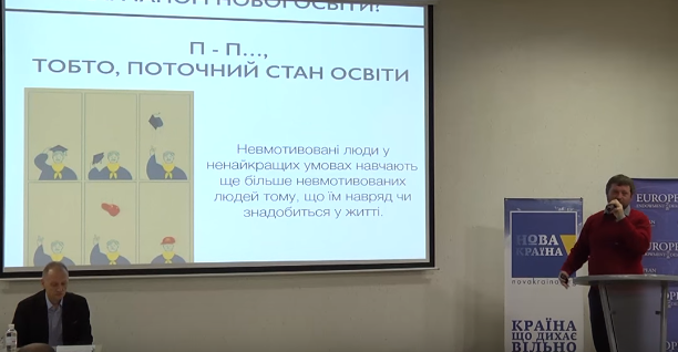 Он также предлагает описать смысл украинского образования цитатой, принадлежащей его авторству: "Немотивированные люди в несамых лучших условиях обучают еще больше немотивированных людей потому, что им вряд ли понадобится в жизни".