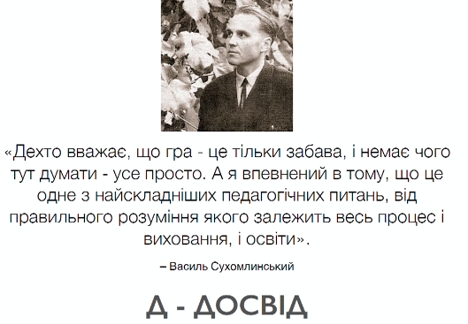 При этом во время своей презентации Корниенко выводит на очередной слайд слова советского педагога-новатора Василия Сухомлинского, который первым внедрил развивающие методы и игровые формы обучения: "Кто-то считает, что игра - это лишь развлечение, и незачем тут думать - все просто. А я уверен в том, что это одно из самых сложных педагогических вопросов, от правильного понимания которого зависит весь процесс и воспитания, и образования".