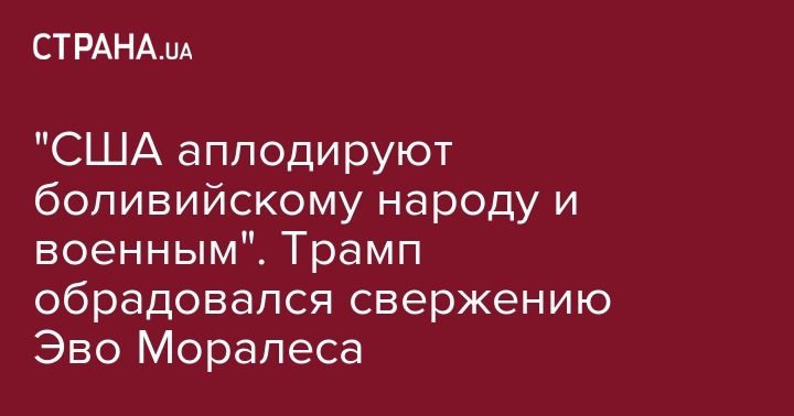 "Соединенные Штаты аплодируют боливийскому народу за его стремление к свободе, а боливийским военным - за выполнение клятвы защищать не только одного человека, но и конституцию Боливии", - указано в опубликованном сообщении.