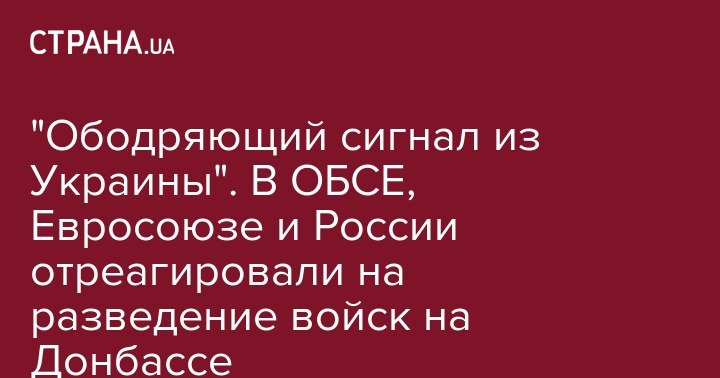 "Начало процесса разведения в Петровском, полный отвод сил и техники в Золотом и прогресс в Станице Луганской, включая хорошо продвинувшийся ремонт моста, являются ободряющими сигналами из восточной Украины", - сказала пресс-секретарь верховного представителя ЕС по иностранным делам и политике безопасности Майя Косьянчич.