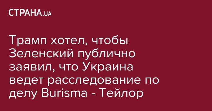 Трамп хотел, чтобы Зеленский публично заявил, что Украина ведет расследование по делу Burisma - Тейлор