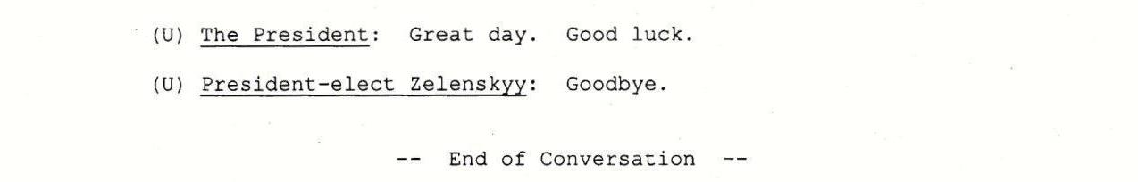 15 ноября Белый дом обнародовал стенограмму первого телефонного разговора Дональда Трампа с Владимиром Зеленским, который произошел в апреле 2019 года, после выборов президента в Украине.