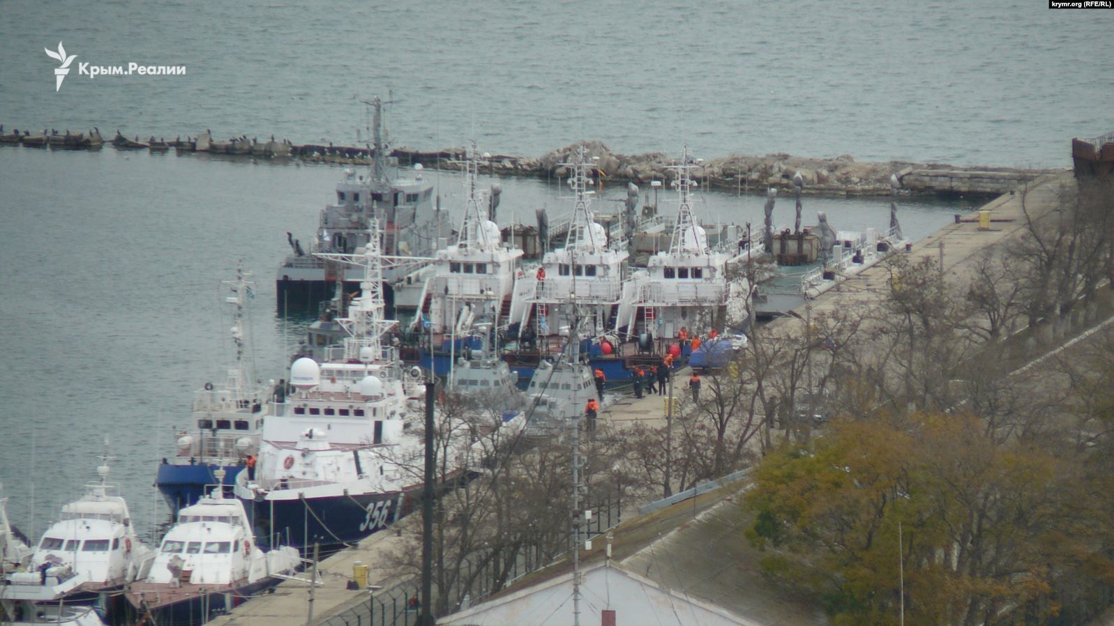 17 ноября, из акватории "Генмола" в Керчи в Крыму в сопровождении российской береговой охраны вывели три украинских военных суда, захваченные год назад. Речь идет о катерах "Бердянск" и "Никополь", а также буксире "Яны Капу". Об этом пишет "Крым.Реалии".