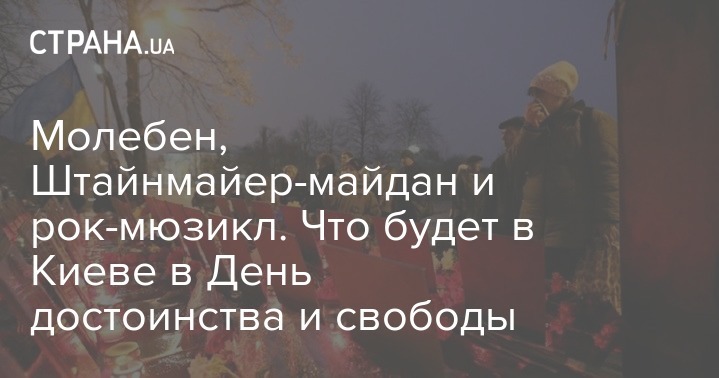 В 18:00 – молебен за Небесную Сотню, зажжение лампад возле часовни по адресу: аллея Героев Небесной Сотни, 6. В мероприятии будут участвовать первые лица государства. Молебен проведут священнослужители Церкви Архистратига Михаила и новомучеников украинского народа УГКЦ, которая расположена на этой же улице.