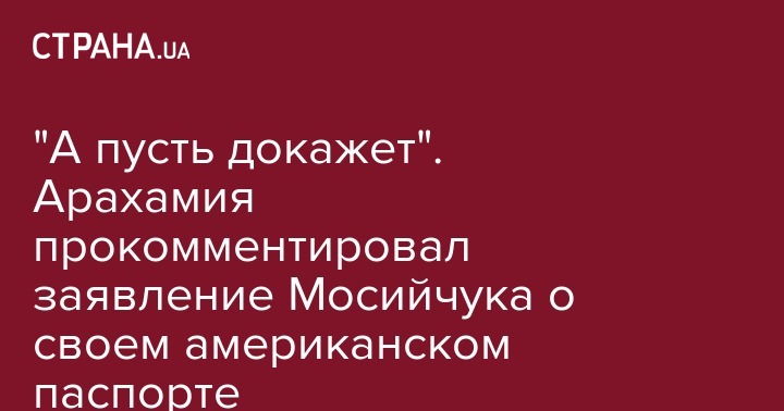 Глава фракции "Слуга народа" Давид Арахамия прокомментировал информацию экс-нардепа Игоря Мосийчука о наличии у него гражданства США и назвал ее бездоказательной. Об этом сообщает "Украинская правда"