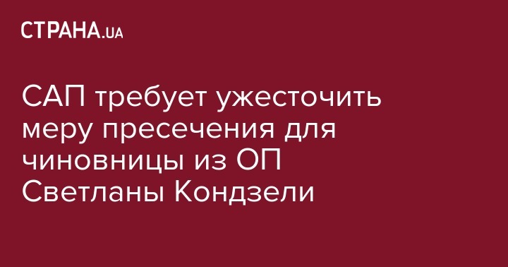 Специальная антикоррупционная прокуратура подала апелляционную жалобу на меру пресечения в виде круглосуточного домашнего ареста, который был применен к руководительнице одного из главных департаментов Офиса президента Светлане Кондзеле. Об этом сообщает пресс-служба прокуратуры.