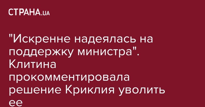 Пока она давала брифинг, появилось обращение министра Криклия, где он сказал, что будет настаивать на увольнении Клитиной