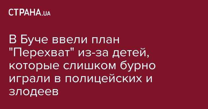 Сегодня, 23 ноября, в городе Буче Киевской области полицейские ввели план "Перехват" из-за  детских игр. Об этом сообщается на официальном сайте Нацполиции в Киевской области.