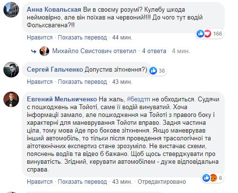 Зам Авакова добавил к посту снятый очевидцами ролик в Telegram-канале "Киев оперативный", в котором отчетливо видно, что в поворачивающее на перекрестке на красный свет авто Николая Кулебы на большой скорости врезался двигавшийся по дороге прямо микроавтобус. При этом чиновник выгораживает омбудсмена, скрыто обвиняя в случившемся владельца Volkswagen'а.