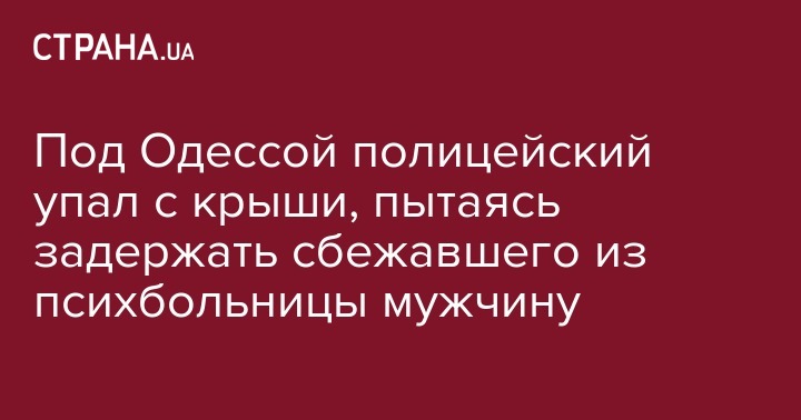 В Одессе патрульный полицейский упал с крыши хозяйственной постройки, пытаясь задержать психически больного мужчину. Об этом сообщили в пресс-службе патрульной полиции в Одесской области.