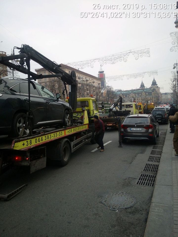 Инспекторы по парковке на Крещатике в Киеве начали массово забирать машины на штрафплощадку, которые припарковали на запрещенных согласно ПДД местах. Об этом сообщает Инспекция по парковке на своей странице в Facebook.