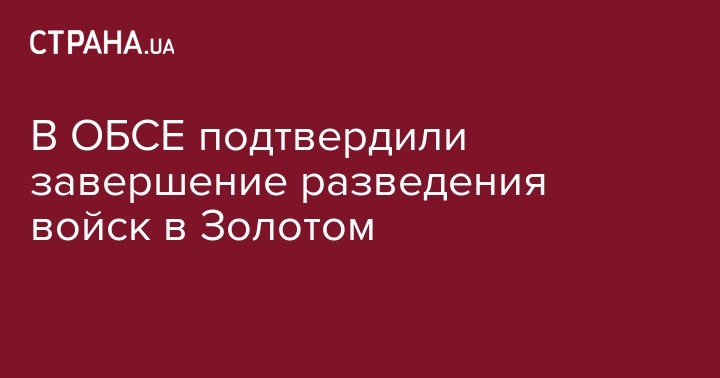 Специальная мониторинговая миссия ОБСЕ провела верификацию процесса завершения разведения сил и средств на участке №2 в г.Золотое Луганской области во вторник. Об этом сообщается на странице Операции Объединенных сил в соцсети Facebook.