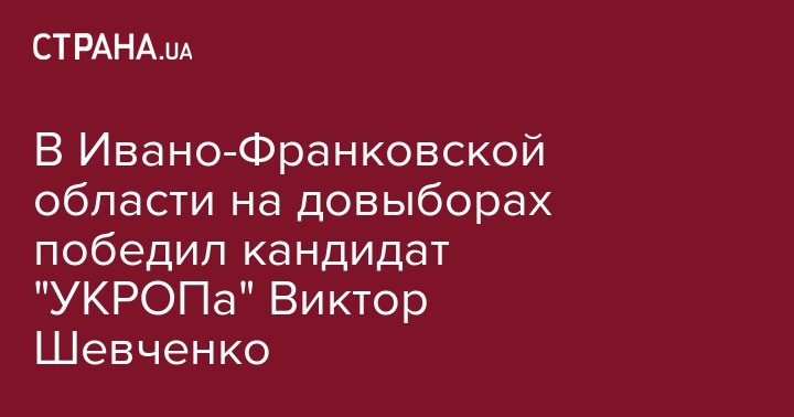 На промежуточных выборах народных депутатов в одномандатном округе №85 (с центром в г.Калуш Ивано-Франковской области) по результатам обработки 100% протоколов, полученных в электронном виде, побеждает выдвинутый партией "Укроп" Виктор Шевченко.