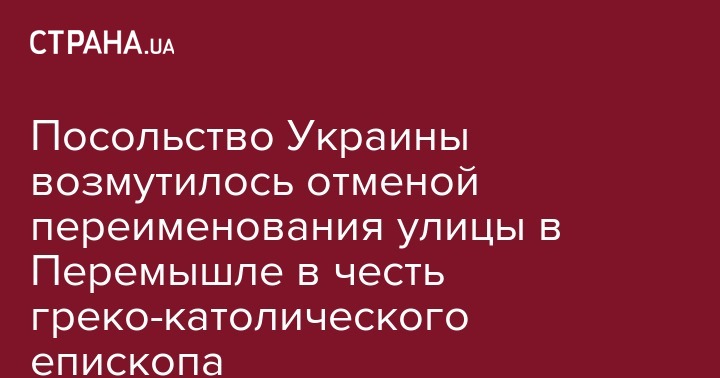 Украинское посольство в Польше выразило возмущение из-за отмены властями города Перемышля решения о присвоении одной из улиц имени епископа Украинской греко-католической церкви Иосафата Коциловского. Об этом посольство сообщило в Facebook.
